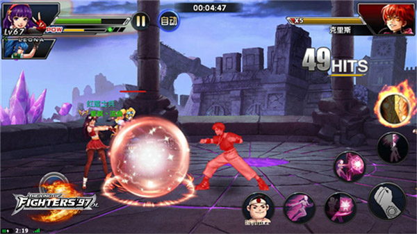 老拳皇的对决模式,玩家与玩家之间的实时格斗对战,每人操控3名角色接力上阵。