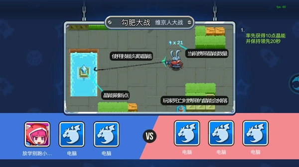 胜利条件:最先收集到10个晶能且连续20秒没有掉落的玩家将获得胜利。