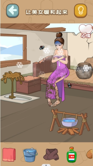 什么?漂亮的小姐姐竟然在这样恶劣的环境里生活!外面大雪纷飞窗子破了!屋里这么冷衣服还是夏季服装。快动用你手上的道具帮助他取暖吧!