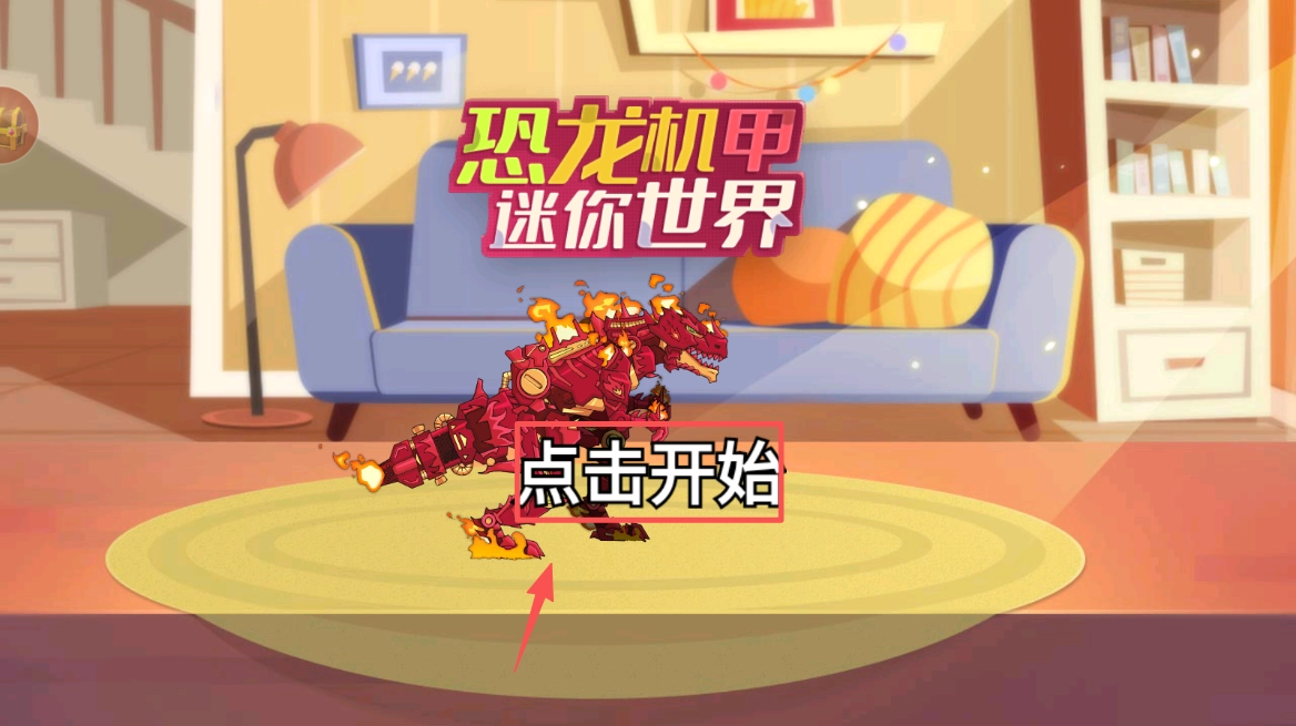 1、首先,点击主界面上的“点击开始”按钮进入游戏,接着挑选你的恐龙机甲,为战斗做好准备。