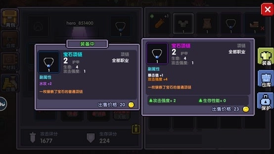 1、武器与防具配置:每位勇者可同时装备三件武器和六件防具。各类武器拥有独特的攻击弹道与频率特性,升级后还能解锁专属特殊效果;防具依据稀有度划分为白、蓝、紫、金及暗金(红色)五个等级,其中每件暗金防具均附带独特被动效果,可通过搭配组合形成专属的被动技能体系。