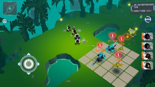 在探索类关卡中,天使们可以在地图中引导参赛者自由行动并收集奖励。当行进路线是安全的,即不会触发战斗的情况下,会用绿色标识行动轨迹;而会触发战斗的行动轨迹会用橙色标识,提醒玩家做好战斗准备或及时变更方向,长按可以看到敌人的仇恨范围。