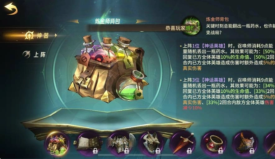 3、游戏内设有数十种神器装备,它们如同召唤师的战术技能库一般,涵盖主动与被动两类效果,玩家需依据阵容的特性来进行灵活搭配。