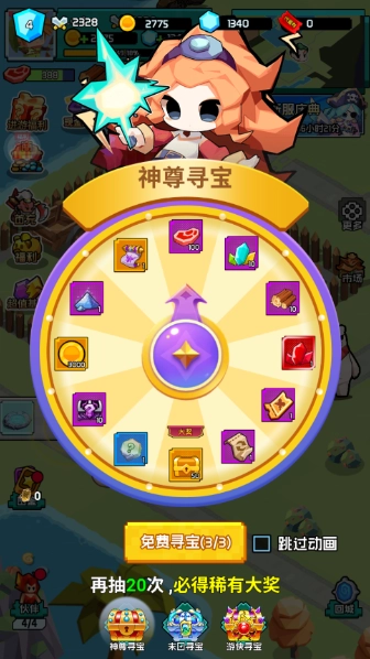 轮盘每日提供3次免费寻宝机会,能转出不少稀缺资源