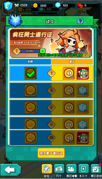 战令分为普通战令和豪华战令,豪华战令需购买激活。