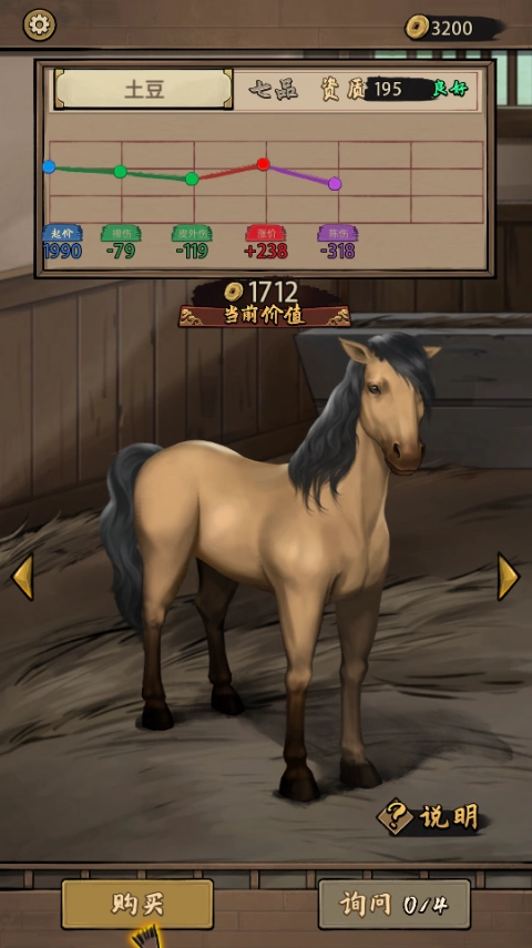 在购买马匹之前,先使用“污点降价”功能,该功能最多能进行4次降价操作,从而帮助降低购买所需的成本。