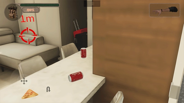 点击那些被突出显示的对象就能进行交互,靠近桌子后,点击桌面上的食物垃圾,这样就能完成垃圾清理操作了。