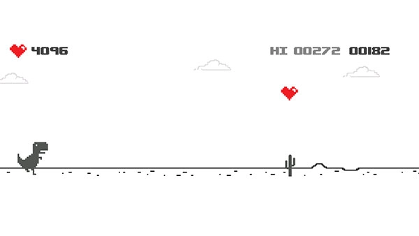 坚持玩的时间越久,小恐龙的奔跑速度就会越快。要是小恐龙撞到了障碍物,游戏便会结束。这时你得开启新一轮游戏(分数也会随之重置),只需按下空格键,就能重新开始游戏了。