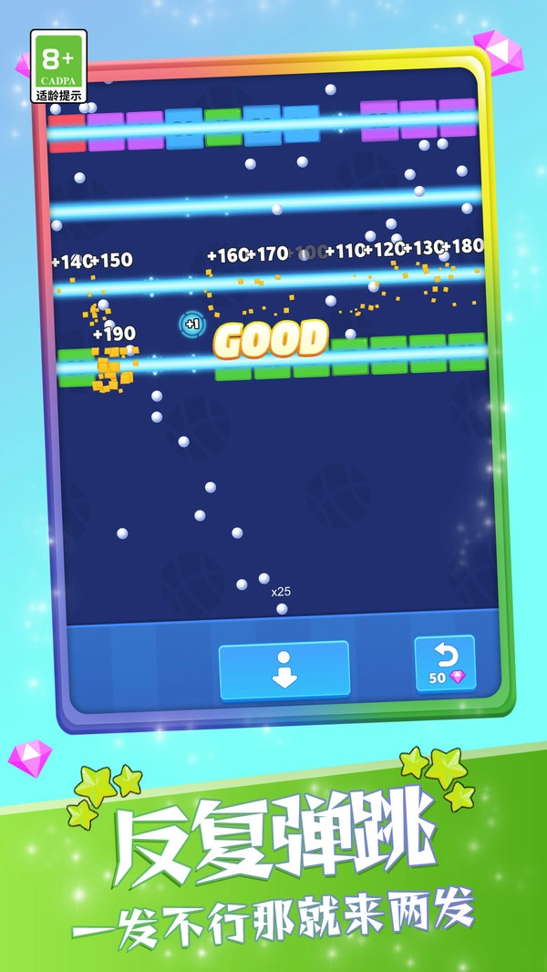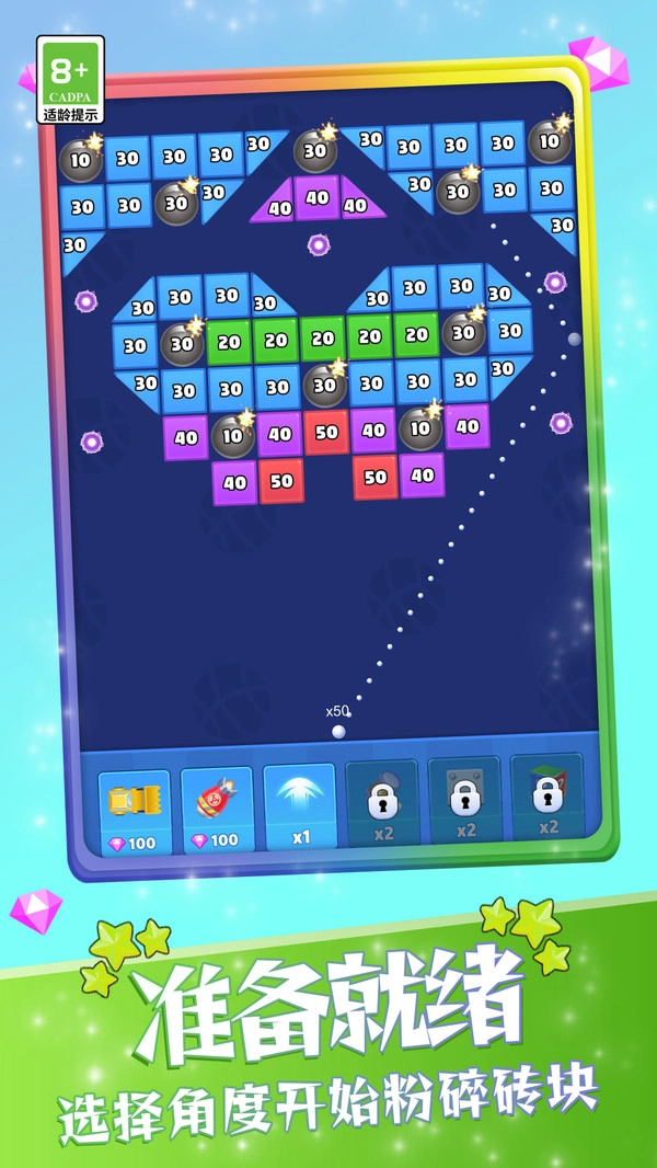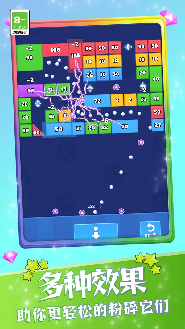 3、通过弹起小球清除所有方块,让玩家尽情沉浸在胜利的欢呼声中。