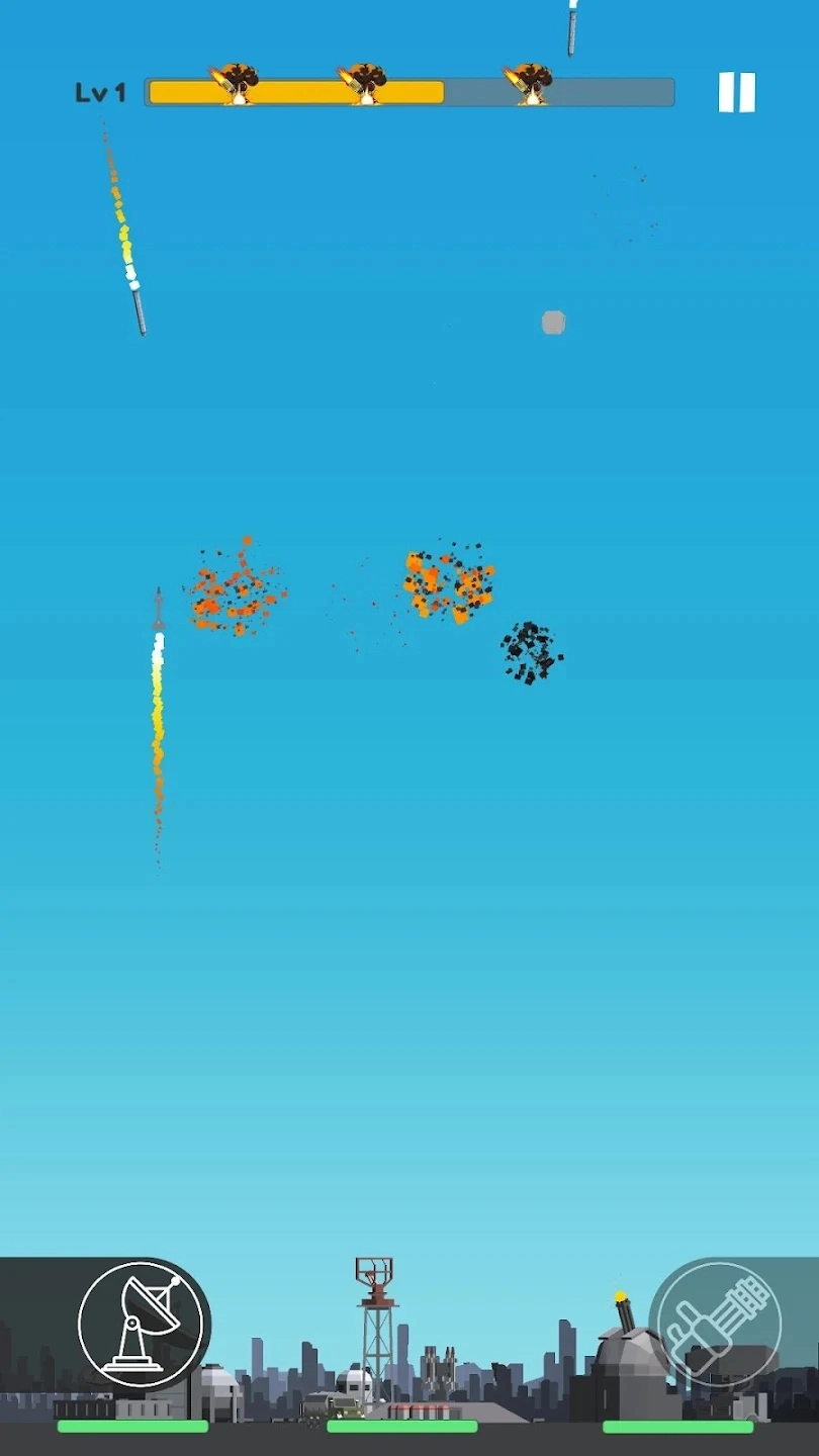 导弹防御是一款休闲射击类游戏,玩家在游戏里要操控一座防空炮台,阻挡敌方导弹对城市的袭击。玩家需要凭借自身的反应速度与判断力,精准地进行瞄准和发射炮弹,以拦截导弹,守护自己的城市。