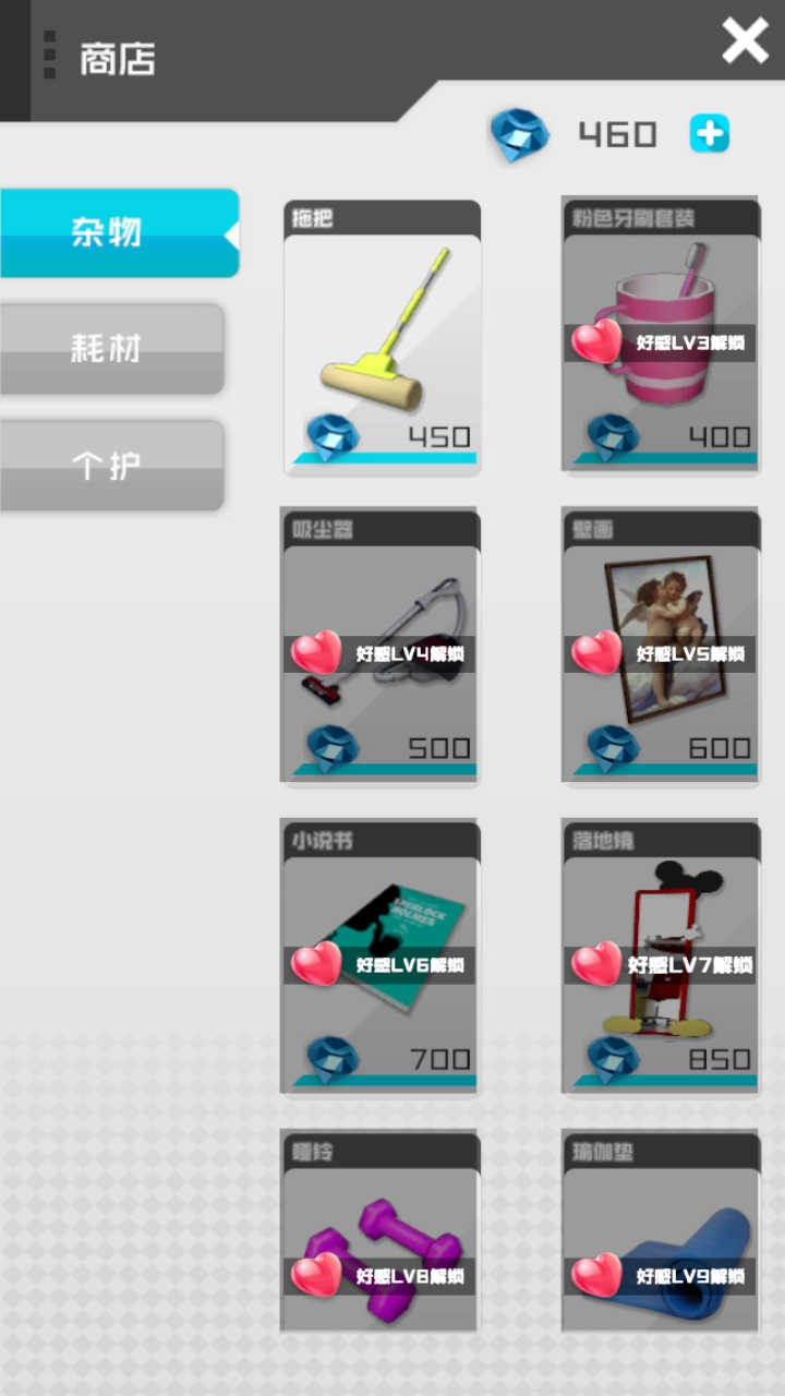 商店里除了常规商品,还售卖各类生活消耗品和家具百货。其中一些商品是完成任务必不可少的道具,剩下的则能增加角色的魅力值,进而对部分互动环节和剧情走向产生影响。
