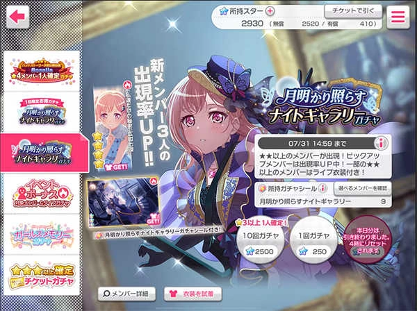 种池子会提高特定成员特定属性的出货概率。当然四星的整体出货率不会改变,不过运气好的话或许能一次毕业。