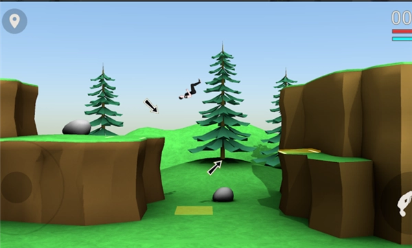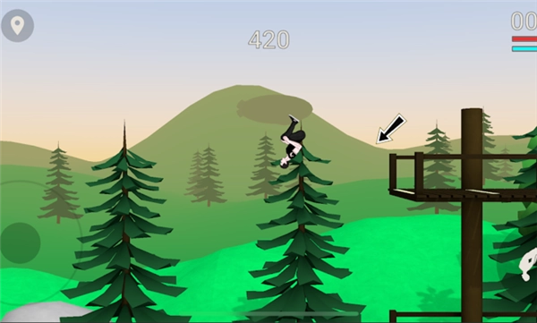 分阶段动作操控:起跳、转身、落地这一系列动作要靠点击屏幕来协调实现,和《QWOP》那种讲究节奏感的设计很像。玩家得精准把控初始速度、旋转角度以及平衡点,不然就会触发失败后的夸张物理效果,比如角色四肢扭曲着摔落在地。