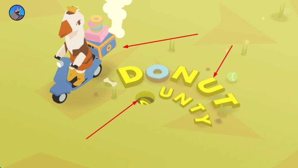 在户外场景里,你需要操控角色驾驶摩托,同时留意场景中的DonUT COUNTY字母和洞,通过让洞吞噬各种物品来推动游戏进程。