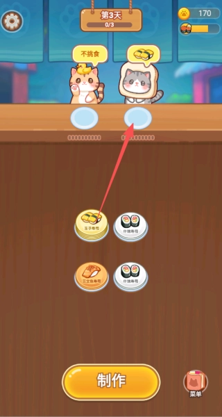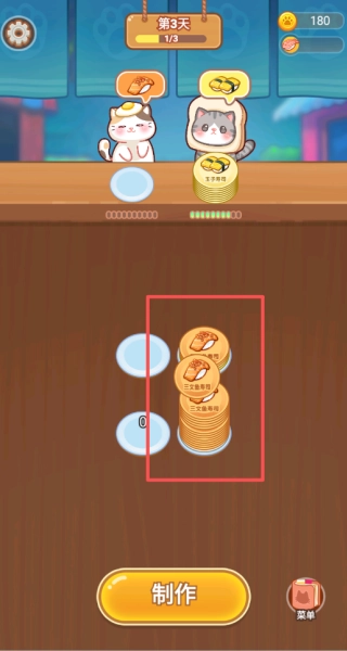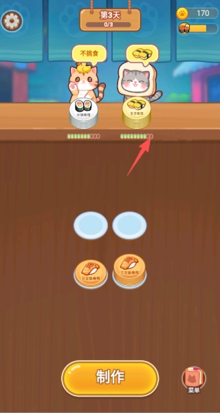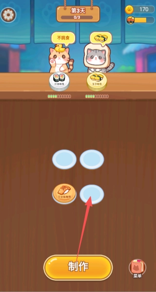 当下方的盘子都摆放好之后,我们就得点击制作按钮,来制作出全新的食物。