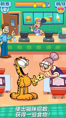 加菲猫的减肥计划汉化版是以经典卡通形象加菲猫为主角的休闲闯关游戏。在游戏里,玩家将化身为加菲猫,在主人乔恩的严格看管下,机灵地偷吃各类美食,同时要防止被发现。该游戏有着可爱的卡通画风和简单易操作的玩法,为玩家准备了两百多个富有挑战性的特色关卡。