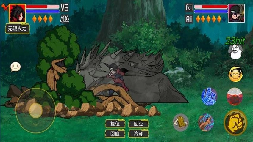 1、复古像素风格:精准复刻忍术世界,画面细腻考究,满溢情怀感。