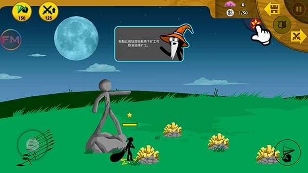 游戏刚开始的时候,我们手里只有矿工和棍棒手这两种兵种。矿工能靠开采矿石帮我们获取经济收入,但得留意,矿工的生存能力很弱,还容易遭到敌方攻击,因此必须建造一些士兵来守护他们。