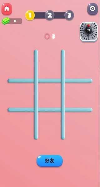 2、选择好友对战后进入井字棋游戏,按照三子连线的规则展开对战。
