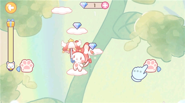 游戏画面的两侧各有一只小巧的猫爪图标,当你点击其中一侧时,画面里的小猫便会朝着该方向跳跃移动。