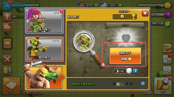 ②查看目标的容器是否处于较空的状态,原因在于若容器为空且资源量较多,意味着大部分资源还存留在采集器里,尚未被主人收集。圣水瓶空时会呈现透明状态,内部完全没有紫色即为最空;储钱罐空的情况与之类似。要是容器为空,就进行下一步操作;反之,则更换下一个对手。