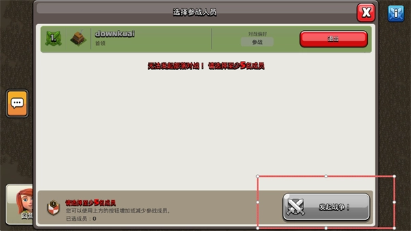 在部落战界面选定参与成员数量后,点击发起按钮即可开启对战,需要注意的是,这场战斗的参与人数门槛为至少五人。