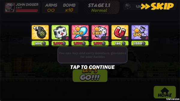 5、进入关卡前的准备界面可以花资源购买炸弹和医疗包等辅助道具,确认无误后点击继续进入战斗。