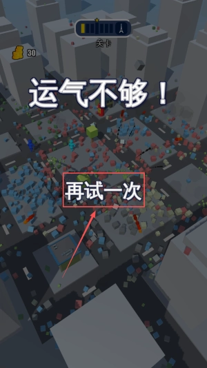4、再次挑战:当画面显示“运气不够!再试一次”,点击该按钮,立即重新开始新一轮清除。