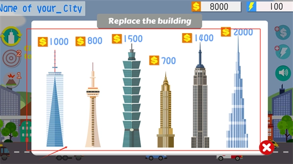 3. 进入城市管理界面后,点击建筑图标即可自由建造你心仪的房屋,不过这会消耗你的能量。