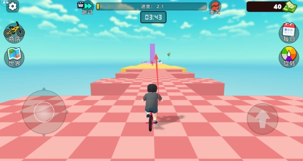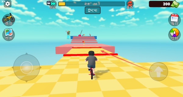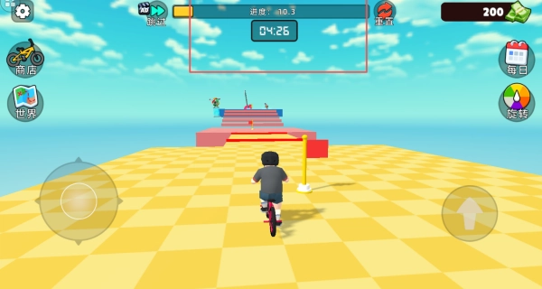 1、进入地图后,滑动屏幕,操控角色骑着单车持续向前冲刺。