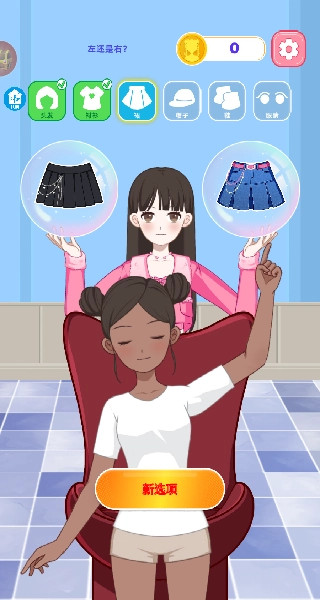 1、从给出的两个服饰选项里挑选一个,当作角色穿搭的组成部分,来逐步搭建起完整的造型。