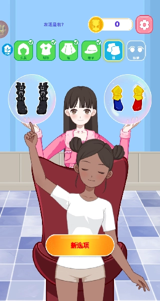 2、针对系统所提供的服饰,你要从左右两侧挑选其一,为你的模特进行穿戴。