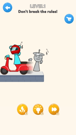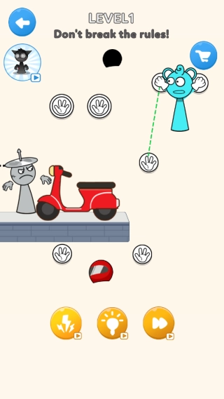 1. 进入第一关后,玩家需协助角色移动,获取头盔并顺利与摩托车接触。