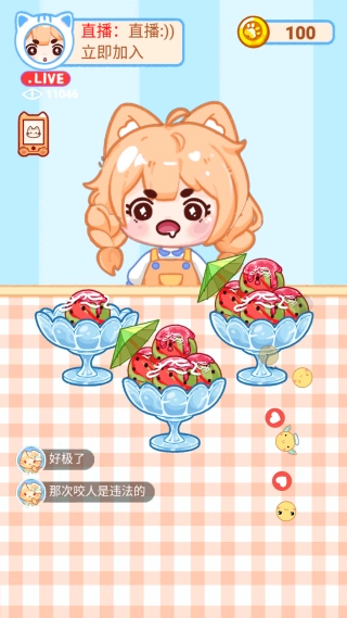 3.接下来就开启冰淇淋吃播环节吧!点击冰淇淋并拖动到角色嘴边就可以啦。