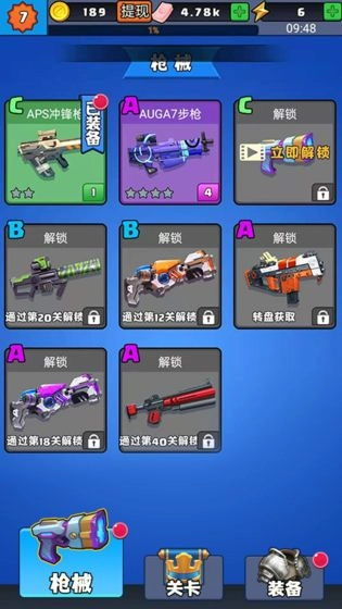 3、提供的武器种类较为有限,主要依靠等级提升、签到转盘以及解锁钻石等途径获取。