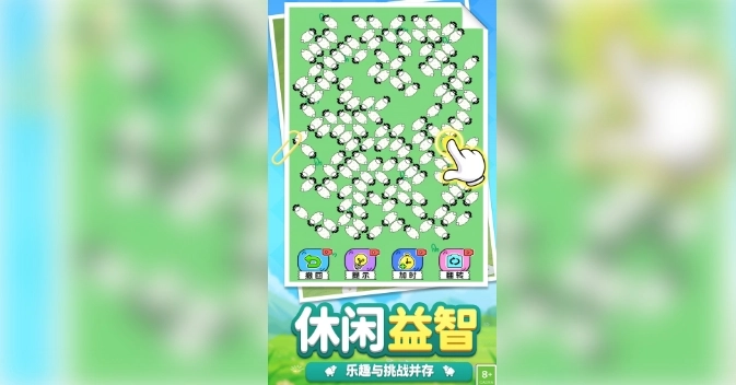 2.玩家只需轻点屏幕,将三个或以上相同的羊图案移动到指定的槽位中即可完成消除,