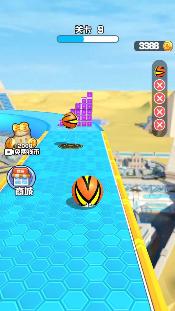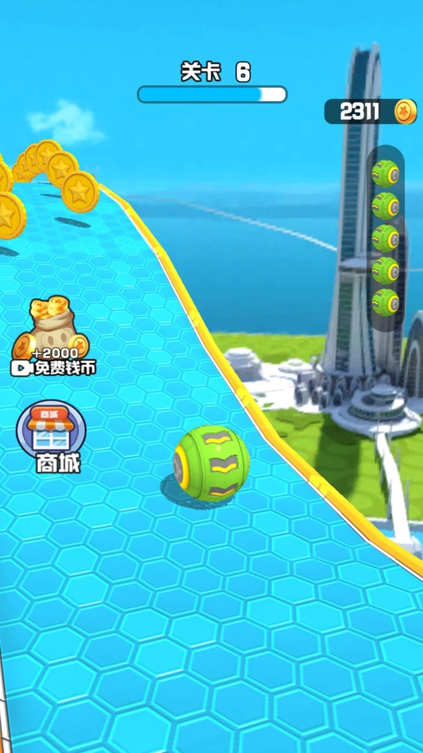 2、关卡中散落着金币和特殊道具,收集后可解锁新球体或捷径;