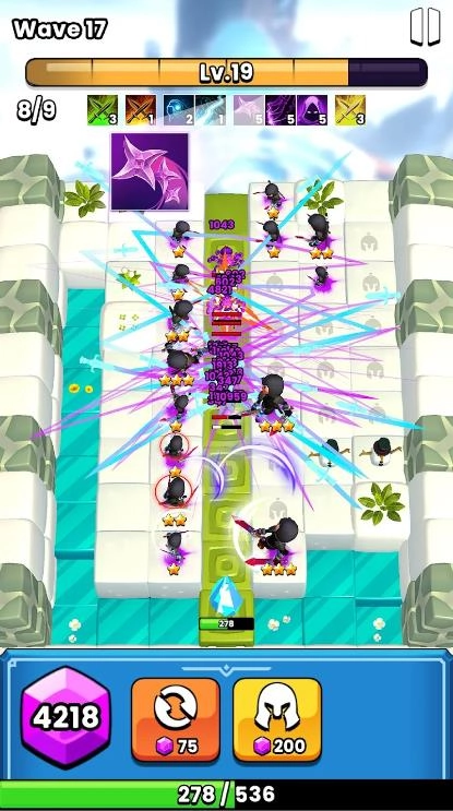 1、召唤并合成强力英雄,提升其战斗力,打造最强防线。