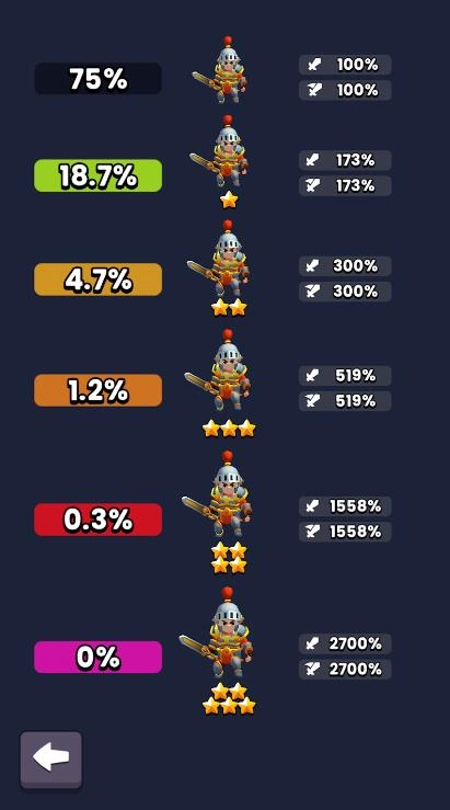 2、把相同等级的英雄进行合成,以此提升他们的战斗力,并解锁更强大的技能。
