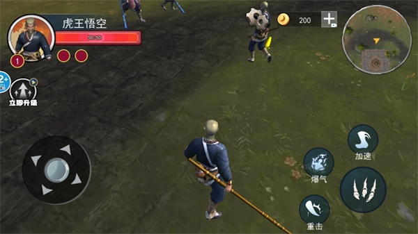 升级前角色以僧人形象呈现,通过寻找目标发起攻击来获取经验值。