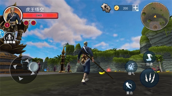点击“开始闯关”进入关卡后,通过滑动屏幕就能操控孙悟空移动前进。