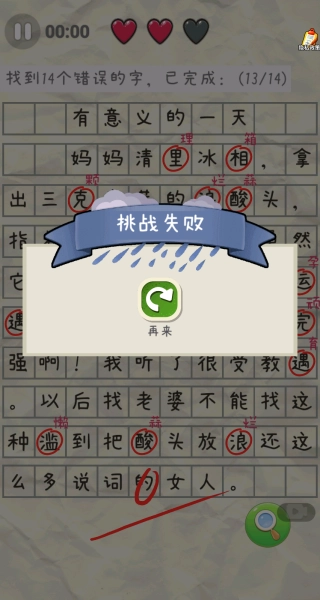 玩清理冰箱这类关卡时,别着急点击操作,先仔细观察所有物品标签的整体排列情况。那些错别字,常常藏在相似物品的相互对比里。