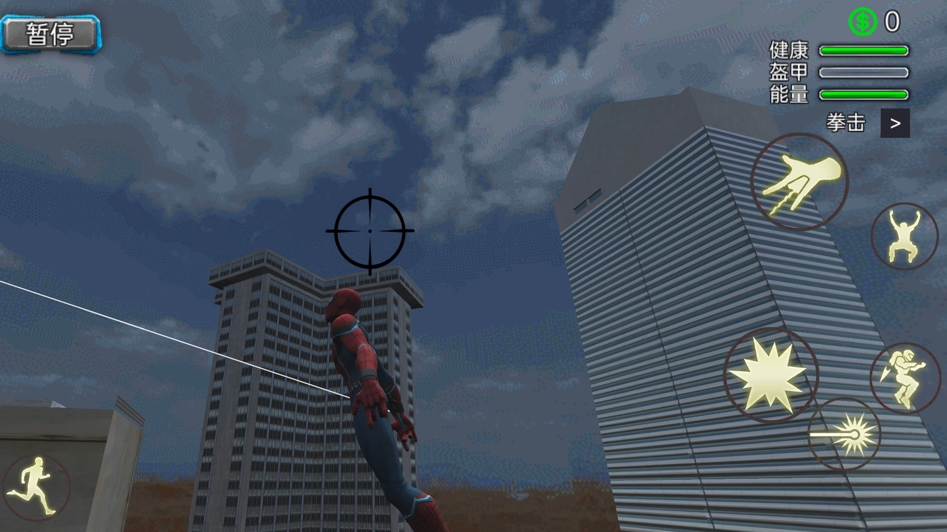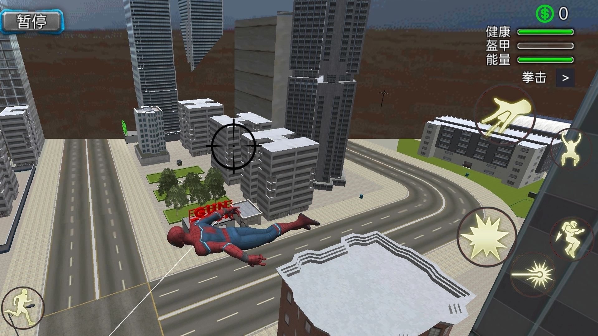 1. 刚开始先在低楼层区域练习摆荡动作,要学会通过“长按发射蛛丝后立刻松开”的操作来达成高速弹射的效果。