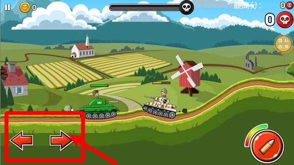 3. 利用左下角的方向箭头来操控坦克前进或后退,在各异的地形里调整坦克所处位置,灵活地变换行进路线是避开敌方攻击和找到合适攻击角度的核心要点。