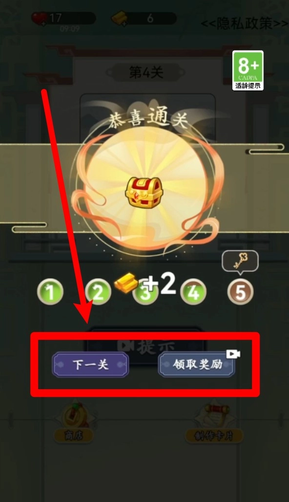 2. 顺利通过关卡领取奖励:成功完成关卡后,你能获得金币和宝箱作为奖励,还可以选择进入下一关,继续挑战难度更高的词汇任务。