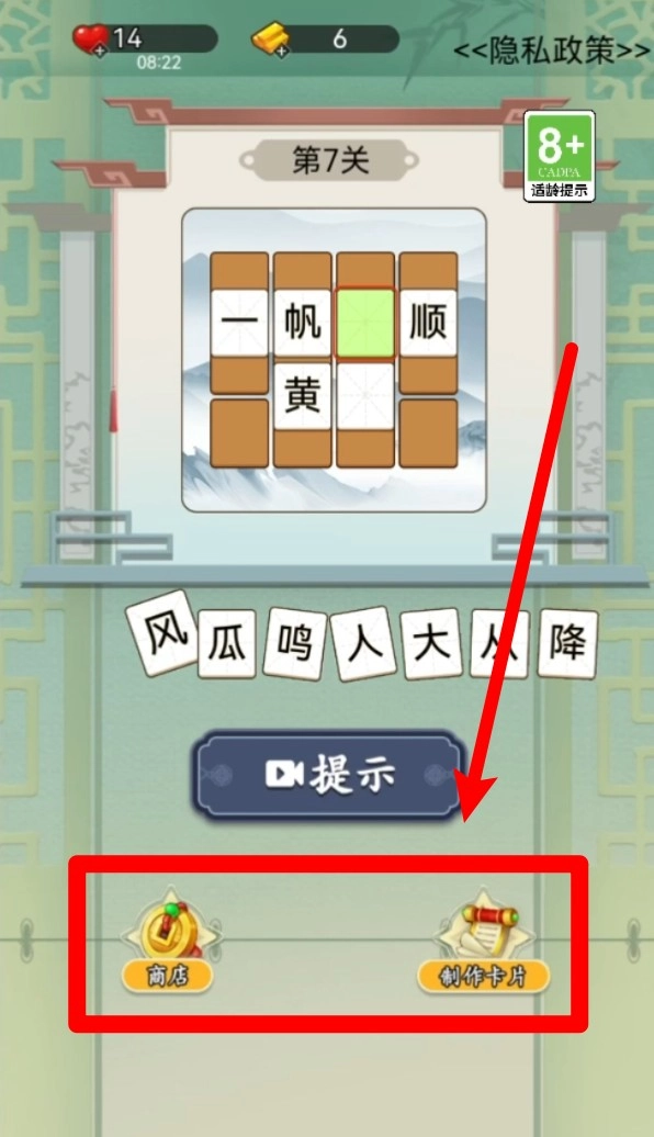 3.商店与卡片功能辅助:点击页面下方的“商店”可购买资源,“制作卡片”可自定义挑战内容,增加游戏互动与趣味性。