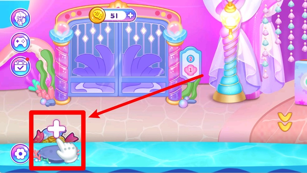 2.点击左下角加号按钮点击加号图示可进入创造新美人鱼页面,自由设计外观与装扮,打造专属角色。