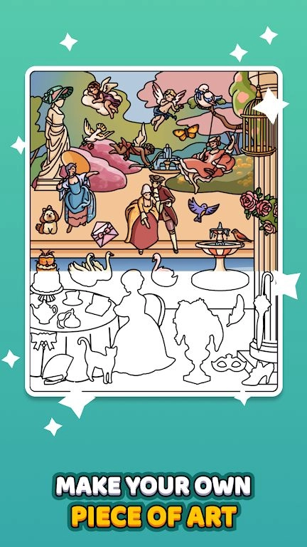 3. 除了关卡任务外,游戏还设有自由填色模式,玩家能够自行挑选贴纸与画布,创作出专属的独特作品。