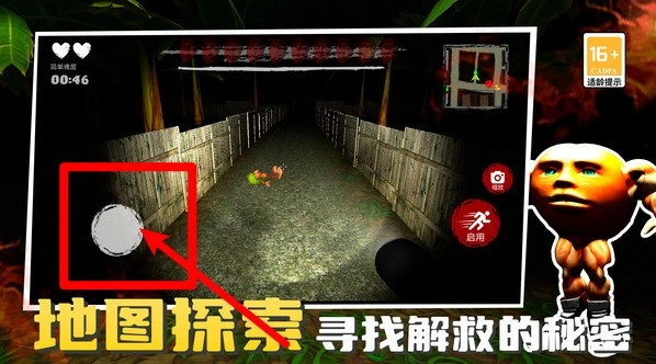 1. 左下角的圆形虚拟摇杆是移动操作的核心,拖动它就能在幽暗的走廊里自由探索,寻找解救相关的线索,同时躲避怪物的袭击。