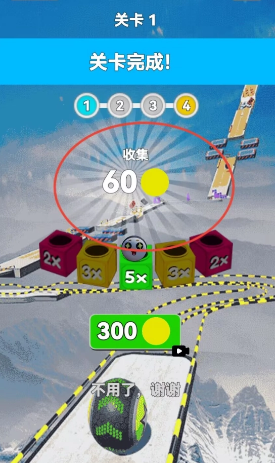 3、在前进的过程中,你可以拾取金币和特殊道具,当成功到达终点后,结算界面会显示你获得的奖励以及收集的完成度。